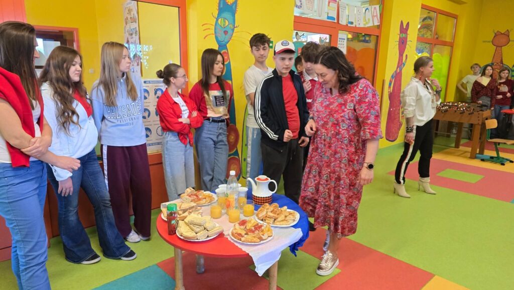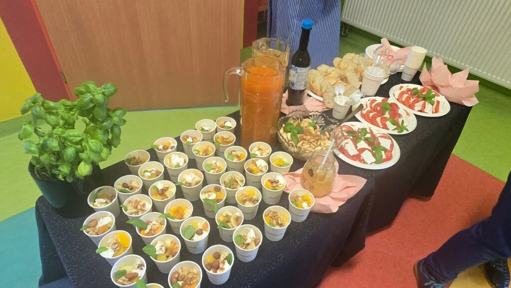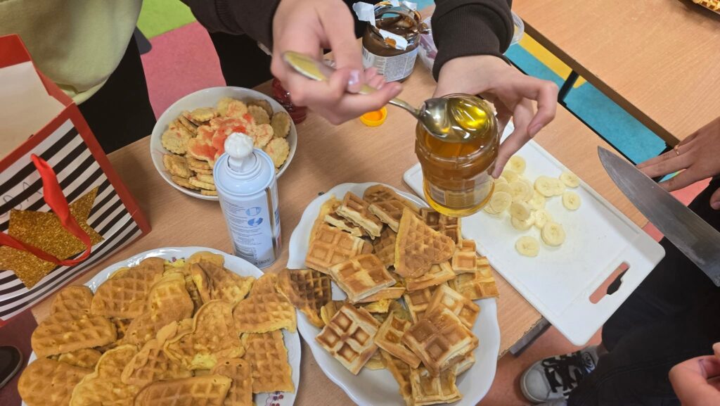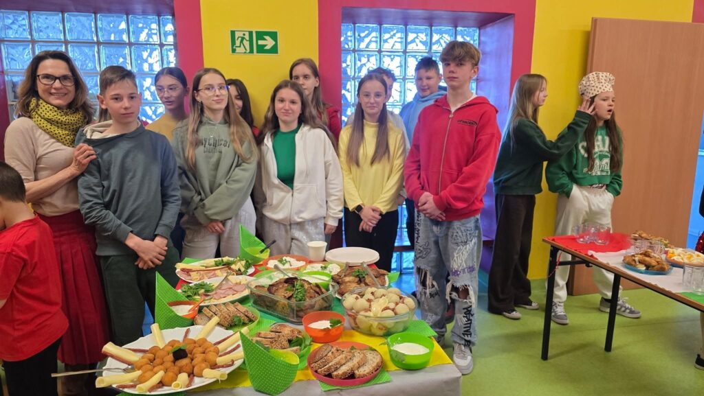 Drugie śniadanie z wychowawcą to projekt, który wdrożyliśmy aby podkreślić znaczenie posiłku jedzonego przez uczniów w szkole. Poprzez wspólne konsumowanie przekąsek uczyliśmy się jak komponować zdrowe i zarazem pożywne drugie śniadanie. Wymienialiśmy się również produktami, a także przepisami na np. pastę jajeczną czy sałatki. Podczas posiłku przypominaliśmy sobie także zasady savoir-vivre, gdyż przestrzeganie ich pozwalało mile spędzić czas przy stole. Zwracaliśmy uwagę, by nikt nie mlaskał, nie siorbał, nie mówił z pełną buzią. Rozmawialiśmy też o tym, że należy pamiętać, że strzelanie groszkiem czy kukurydzą z widelca jest fajną zabawą, ale nie za dobrą na wspólne spędzenie czasu przy stole.